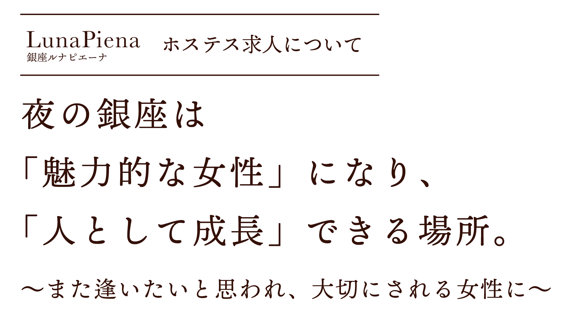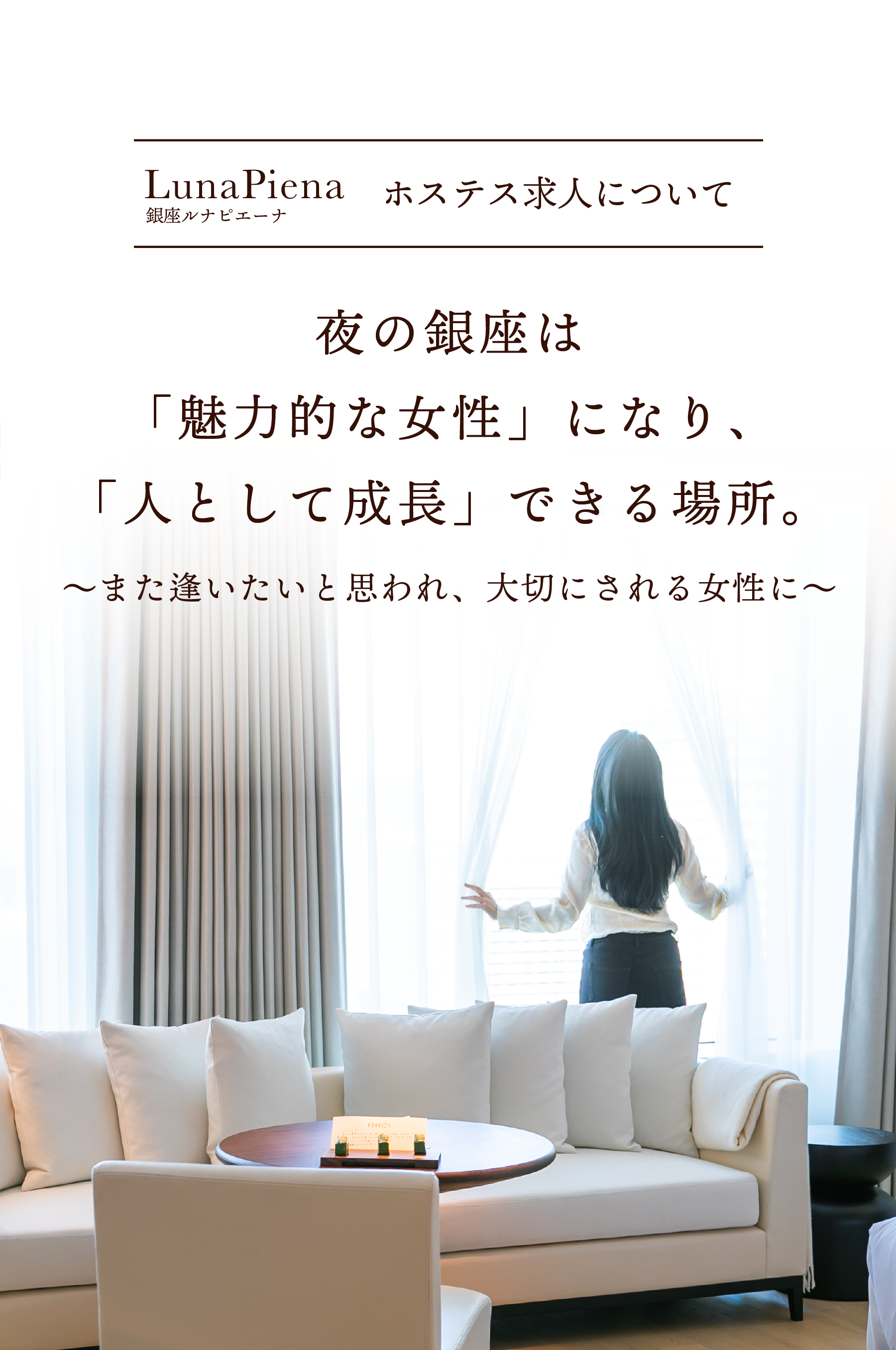 そんな時、ルナピエーナで働いていた子からの紹介でルナピエーナに出会い、人として、女性として成長するには銀座で働くことが近道ではないかと思い面接をお願いしました。